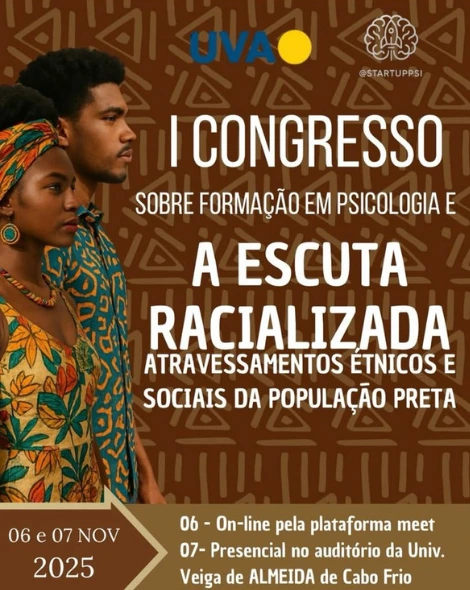 NOVEMBRO 2025 1° Congresso sobre Formação em Psicologia e a Escuta Racializada: atravessamentos étnicos e sociais da população preta DATA: 06 a 07 de novembro de 2025LOCAL: Universidade Veiga de Almeida – Campus Cabo Frio | Cabo Frio (RJ)INFORMAÇÕES: Evento híbrido e gratuitoE-MAIL CONTATO: WHATSAPP: Inscrição Instagram Compartilhe: