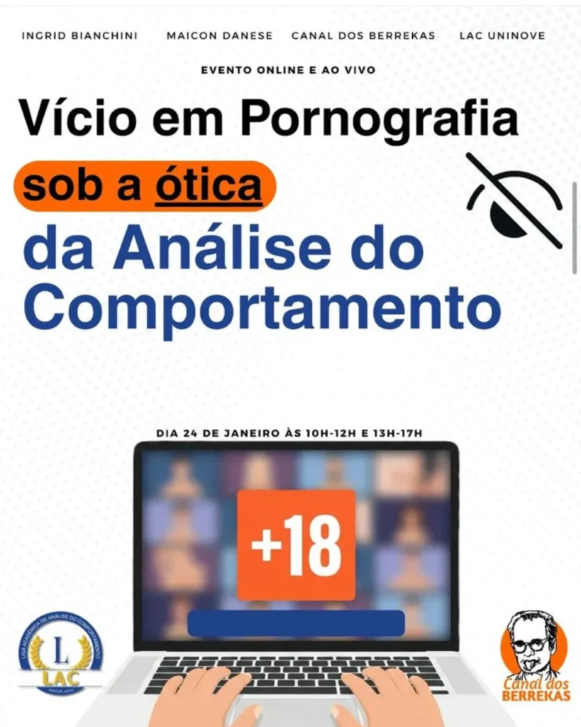 JANEIRO 2026 Voltar à página inicial Pornografia sob ótica da Análise do Comportamento DATA: 24 de janeiro de 2026LOCAL: Universidade Nove de JulhoINFORMAÇÕES: Evento online com taxa de inscriçãoE-MAIL CONTATO: WHATSAPP: Inscrição Instagram Compartilhe: