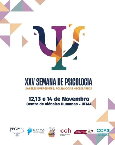 NOVEMBRO 2025 XXV Semana de Psicologia Ufma DATA: 12 a 14 de novembro de 2025LOCAL: Centro de Ciências Humanas da Universidade Federal do Maranhão – UFMA | São Luís (MA)INFORMAÇÕES: Evento presencial com taxa de inscriçãoE-MAIL CONTATO: WHATSAPP: Inscrição Instagram Compartilhe: